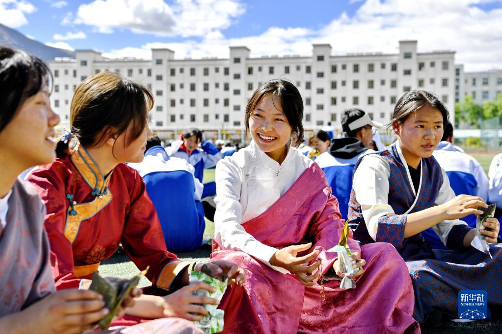 西藏山南市第二高級中學的學生在學校過端午節(jié)(2022年6月3日攝)。新華社記者 張汝鋒 攝