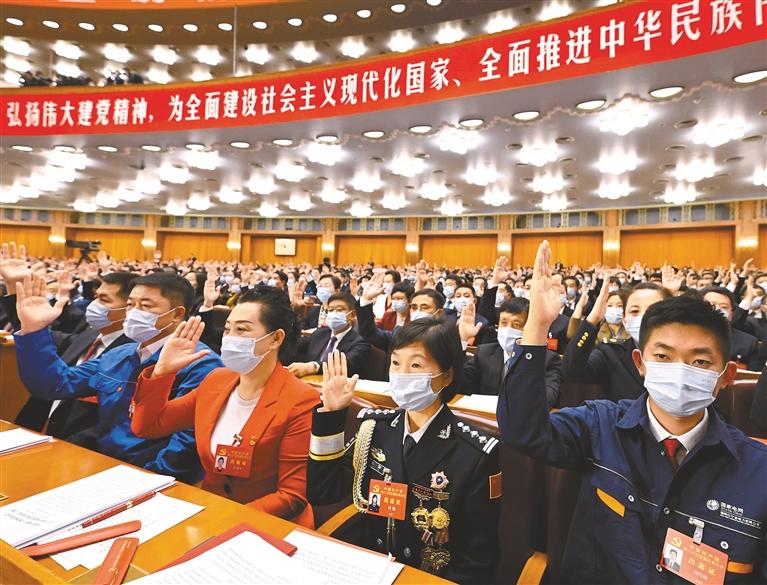 圖為10月22日,中國共產(chǎn)黨第二十次全國代表大會(huì)在北京人民大會(huì)堂勝利閉幕。這是代表舉手表決。新華社記者 申宏 攝