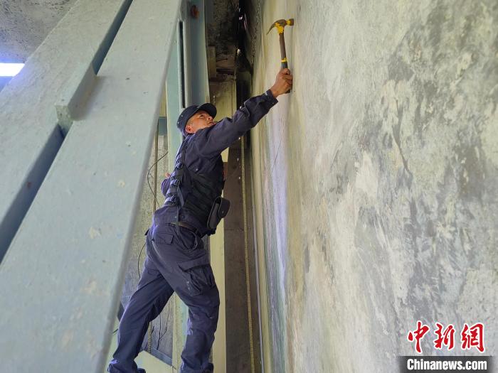 圖為墨脫邊境管理大隊(duì)民警正在檢查橋梁受損情況?!罟怙w 攝