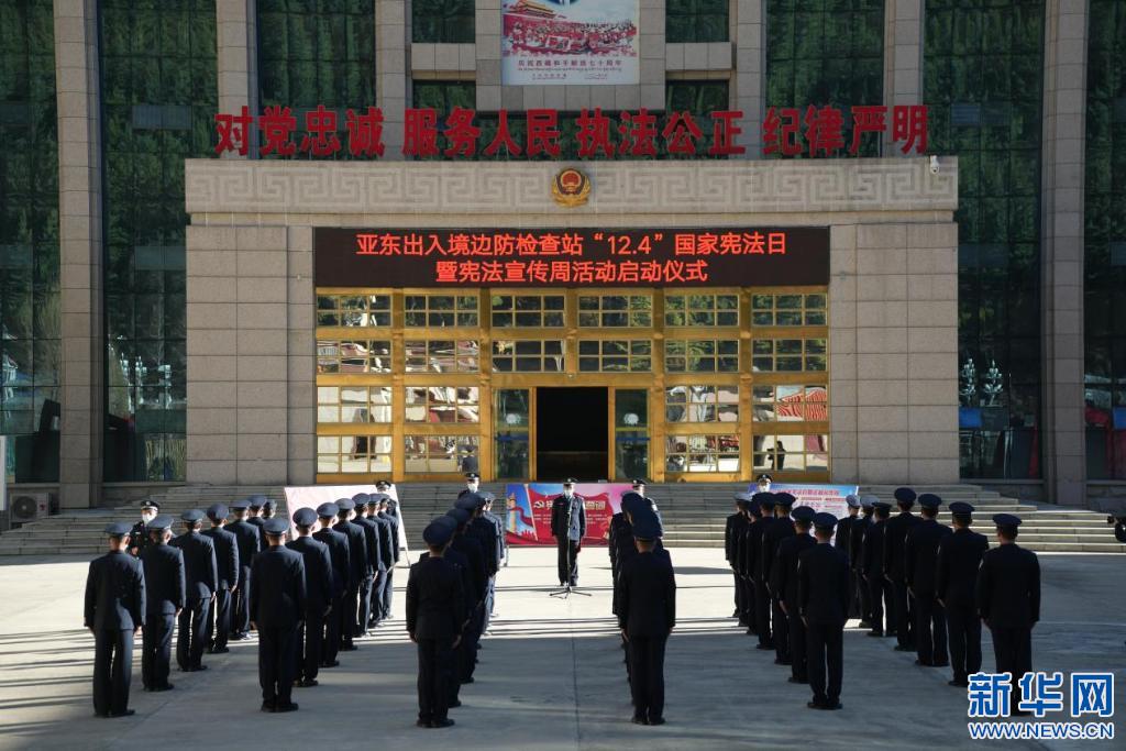 4日,西藏亞?wèn)|出入境邊防檢查站舉行“12·4”國(guó)家憲法日暨憲法宣傳周活動(dòng)啟動(dòng)儀式。儀式上,全體民警高舉右手莊嚴(yán)宣誓:“我宣誓:忠于中華人民共和國(guó)憲法,維護(hù)憲法權(quán)威,履行法定職責(zé),忠于祖國(guó)、忠于人民,恪盡職守、廉潔奉公,接受人民監(jiān)督,為建設(shè)富強(qiáng)民主文明和諧美麗的社會(huì)主義現(xiàn)代化強(qiáng)國(guó)努力奮斗!”民警們鏗鏘有力的誓言表達(dá)了捍衛(wèi)憲法、忠誠(chéng)踐行使命的堅(jiān)定信心和決心。