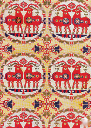 青藏高原北部絲綢之路沿線出土的吐蕃時期中亞風(fēng)格的絲綢。瑞士阿拜格基金會供圖