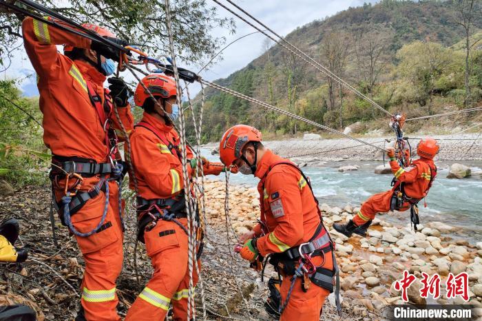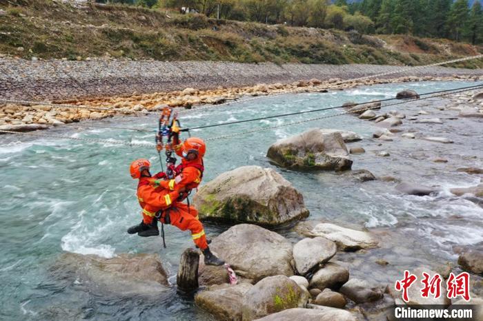 繩索渡河救援訓(xùn)練現(xiàn)場(chǎng)?!√剖啦?攝