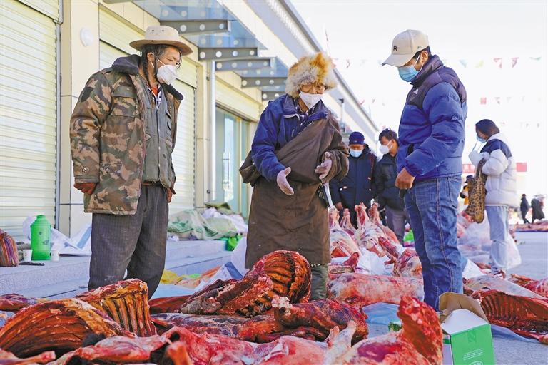 當(dāng)?shù)厝罕娺x購(gòu)牛羊肉。記者 永青 攝