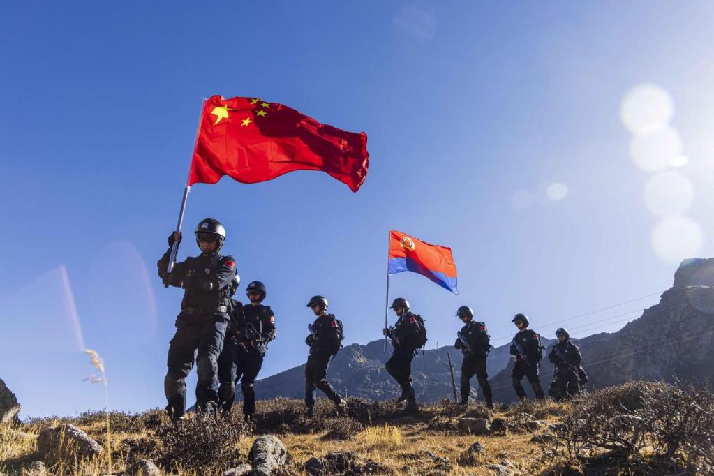 1月6日,西藏亞?wèn)|出入境邊防檢查站移民警察在海拔4300余米的西藏亞?wèn)|縣乃堆拉山口,對(duì)國(guó)門(mén)邊境沿線山口要道、河谷、溝口等區(qū)域開(kāi)展巡邏踏查,守衛(wèi)國(guó)門(mén)邊境,向第三個(gè)“中國(guó)人民警察節(jié)”(1月10日)獻(xiàn)禮。