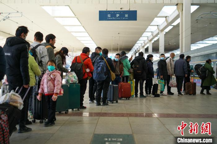 春運(yùn)第一天,旅客在拉薩站排隊(duì)乘車?!〗w波 攝