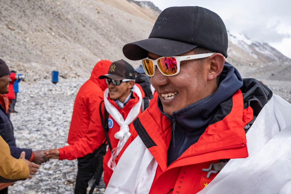 德慶歐珠和隊(duì)友安全返回珠峰大本營(2022年5月4日攝)。