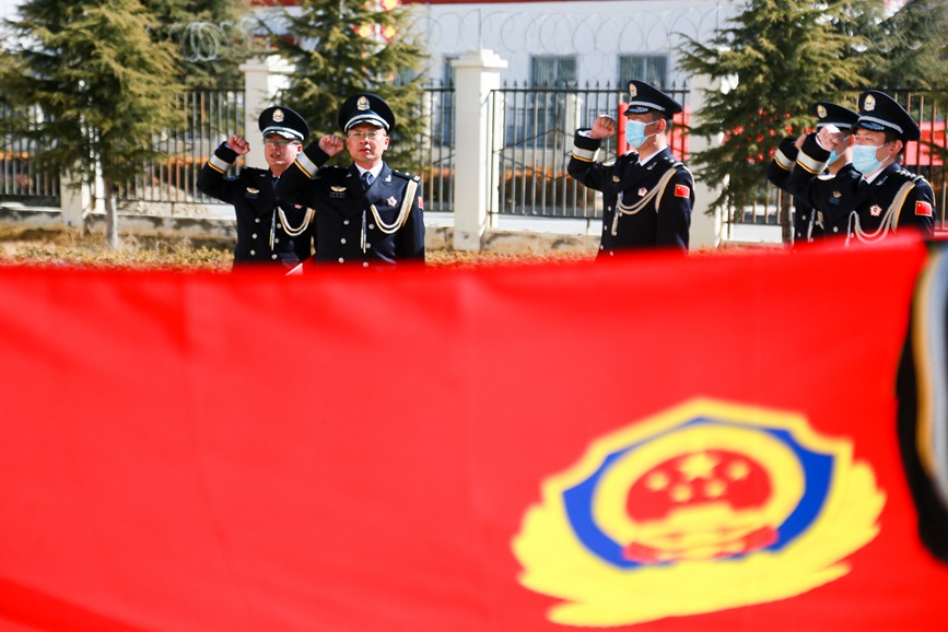 1月9日上午,拉薩鐵路公安處組織迎警旗宣誓儀式,各單位干部民警身著警禮服整齊列隊(duì)、莊嚴(yán)肅立,在雄壯激昂的警歌聲中向警旗莊重敬禮。升旗儀式結(jié)束后,全體干部民警面向警旗,舉起右臂,齊聲宣誓中國人民警察誓詞,夯實(shí)獻(xiàn)身于拉鐵公安事業(yè)的堅(jiān)定決心。