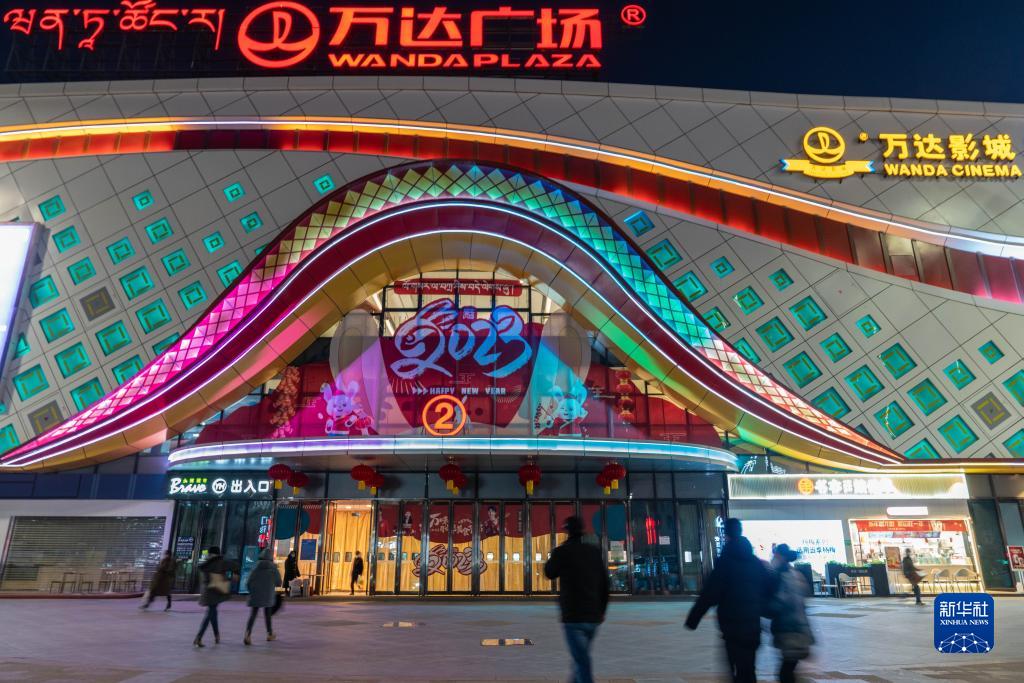 新年到來,拉薩城關(guān)萬達(dá)廣場商圈的樓宇外墻貼上了迎接2023年的喜聯(lián),掛上了燈籠等裝飾品,喜慶氛圍濃厚。