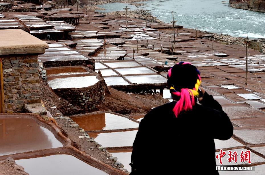2月13日,西藏昌都芒康縣納西民族鄉(xiāng)加達村村民俯瞰古鹽田。
