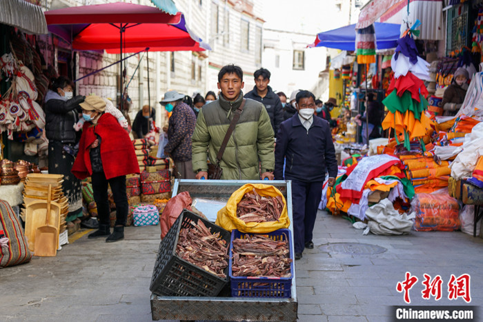 圖為2月13日,拉薩老城區(qū)沖賽康市場人流如織。中新社記者 江飛波 攝