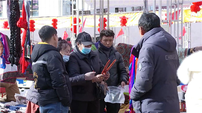 走進年貨街,記者看到大街小巷置辦年貨的人群紛至沓來,市場上酥油、卡賽、人參果、五彩青稞穗、切瑪盒、花束等藏歷新年傳統(tǒng)年貨應(yīng)有盡有,特色產(chǎn)品豐富充裕。人們盡情挑選年貨,大包小包滿載而歸。