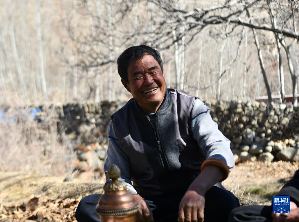 在核桃樹下的多瓊(2月1日攝)。新華社記者晉美多吉 攝