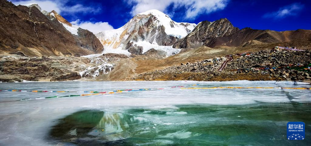 西藏拉薩市尼木縣境內(nèi)的瓊穆崗嘎峰海拔7048米,是念青唐古拉山脈南端最后一座高峰。瓊穆崗嘎冰川氣勢(shì)恢宏,冰臼湖群點(diǎn)綴其間,湖水結(jié)冰后呈現(xiàn)出夢(mèng)幻般的色彩,恍若仙境。新華社記者 沈虹冰 攝