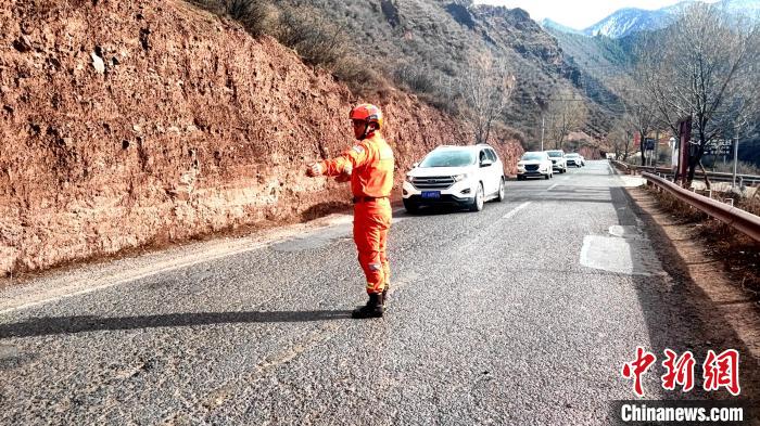 圖為昌都市卡若區(qū)森林消防中隊(duì)“火焰藍(lán)”志愿服務(wù)隊(duì)指揮過(guò)往車輛安全通行。 卡若區(qū)森林消防中隊(duì)“火焰藍(lán)”志愿服務(wù)隊(duì)供圖