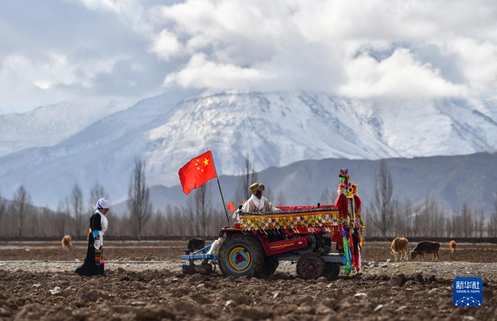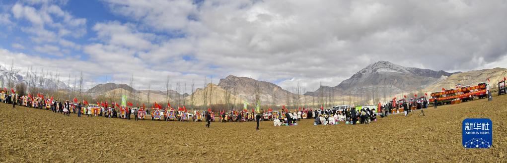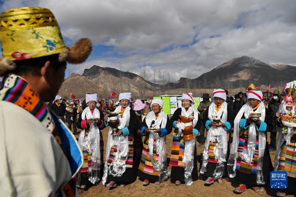 西藏林周縣強(qiáng)嘎村的春耕儀式現(xiàn)場(chǎng)(3月16日攝)。新華社記者 張汝鋒 攝