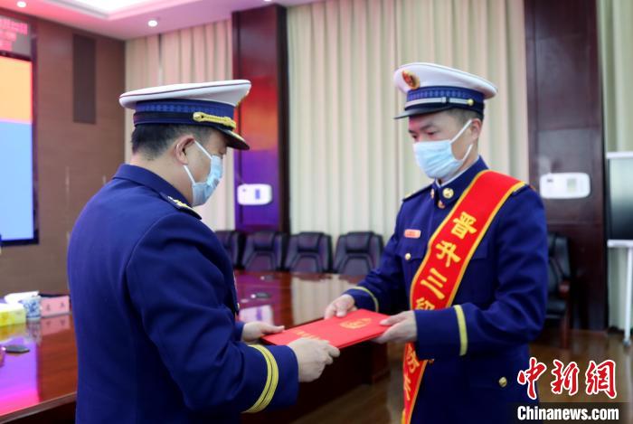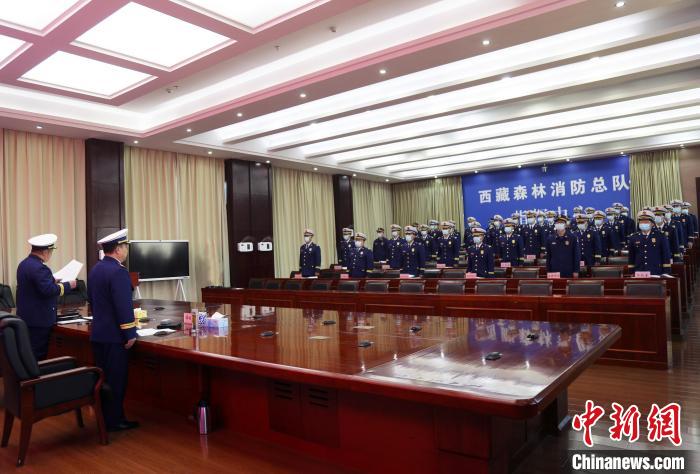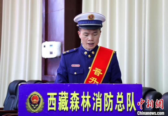 3月22日,頒發(fā)晉升命令狀。 西藏森林消防總隊供圖