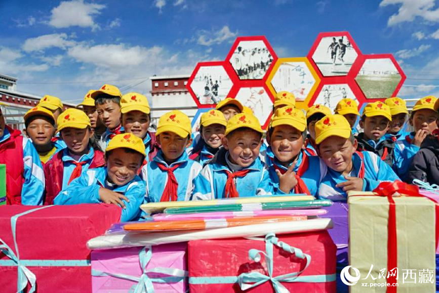 拉薩市當雄縣小學(xué)的孩子們收到愛心人士送來的禮物。人民網(wǎng) 李海霞攝