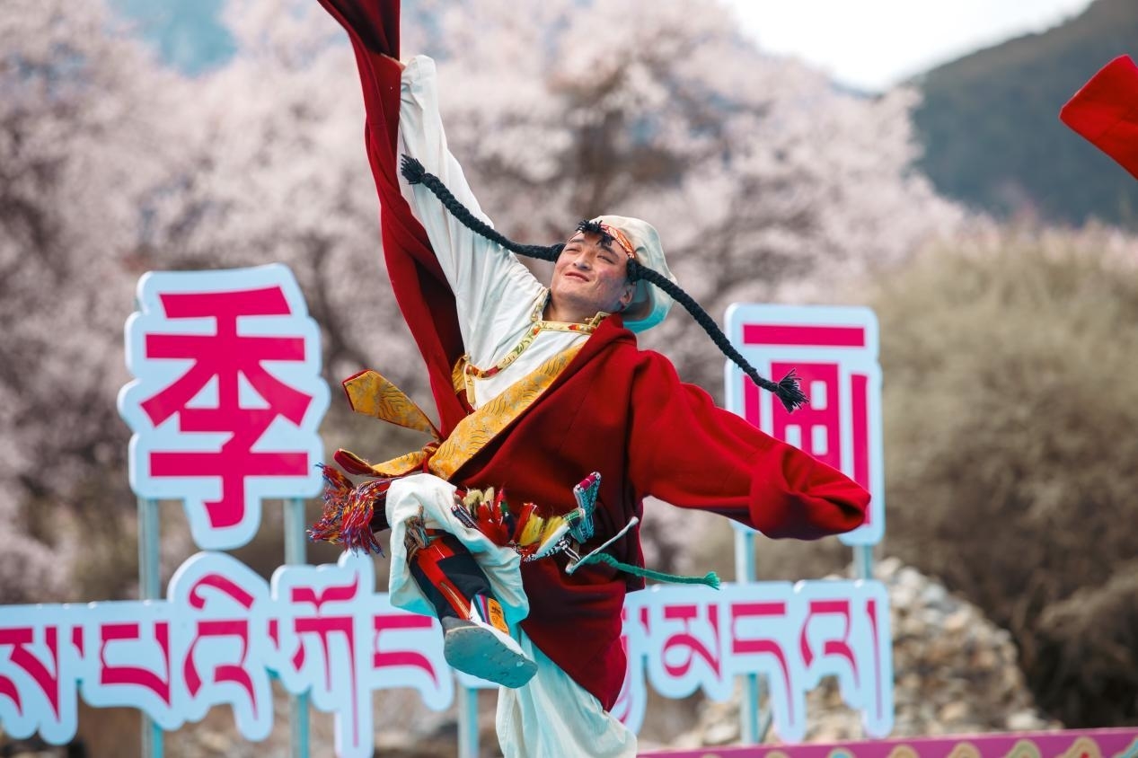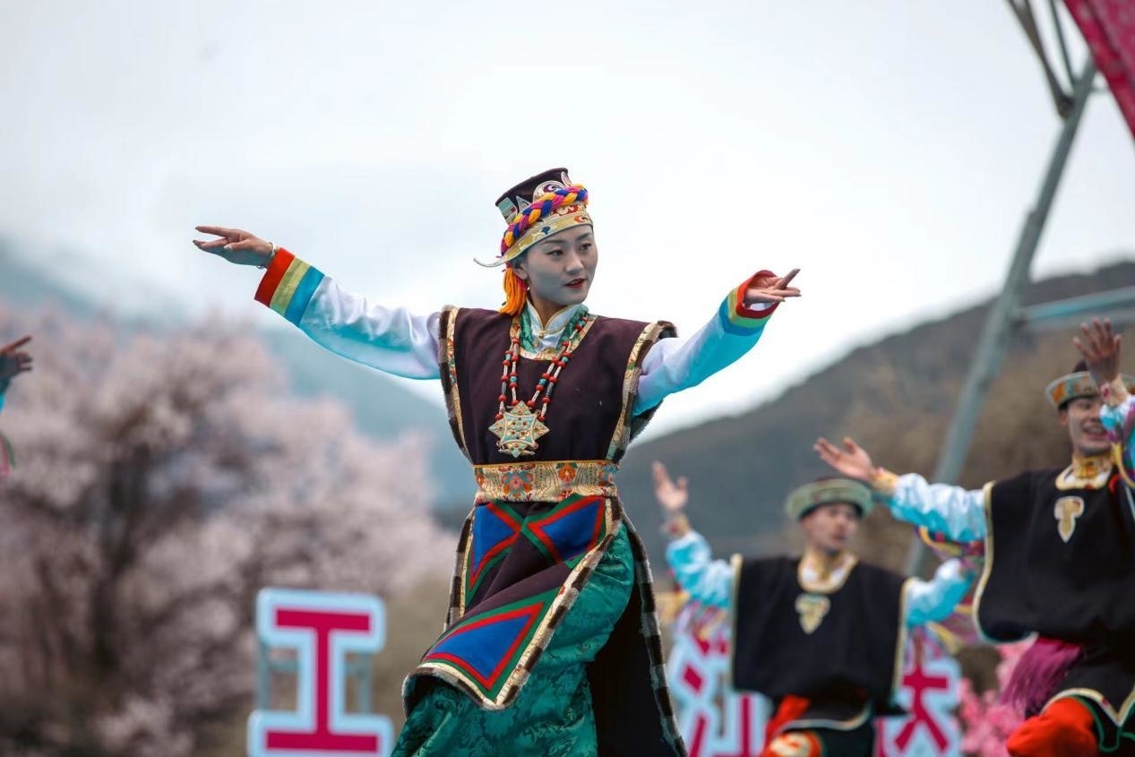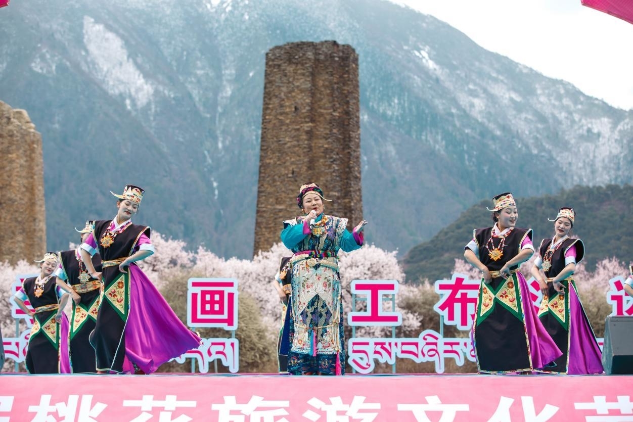 皚皚雪山下,千年古堡旁,灼灼桃花,花開正艷。羅布桑珠、巴金旺甲、齊旦布、桑杰才讓等藏族知名歌手、工布江達(dá)本地歌手、當(dāng)?shù)厝罕婟R聚,流行歌曲與工布民歌等當(dāng)?shù)靥厣硌萁Y(jié)合,為網(wǎng)友們獻(xiàn)上了一場(chǎng)桃花樹下的歌舞盛宴。