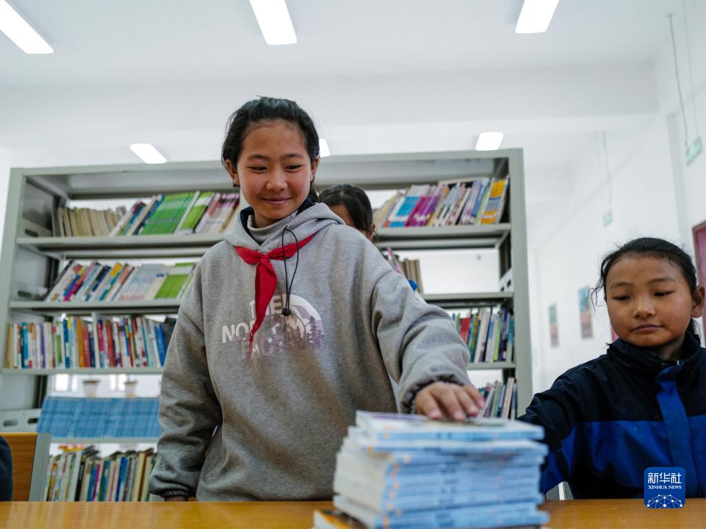3月31日,下察隅鎮(zhèn)中心小學(xué)的學(xué)生正在把書(shū)放回書(shū)架。新華社記者 格桑朗杰 攝