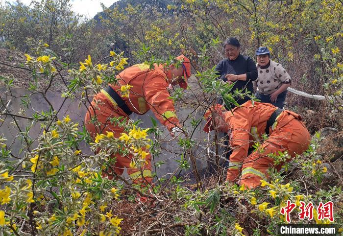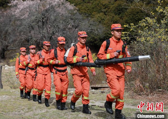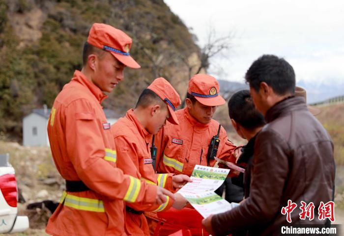 森林消防隊(duì)員在祭祀?yún)^(qū)域開(kāi)展防火宣傳?!∥骼@拉翁 攝