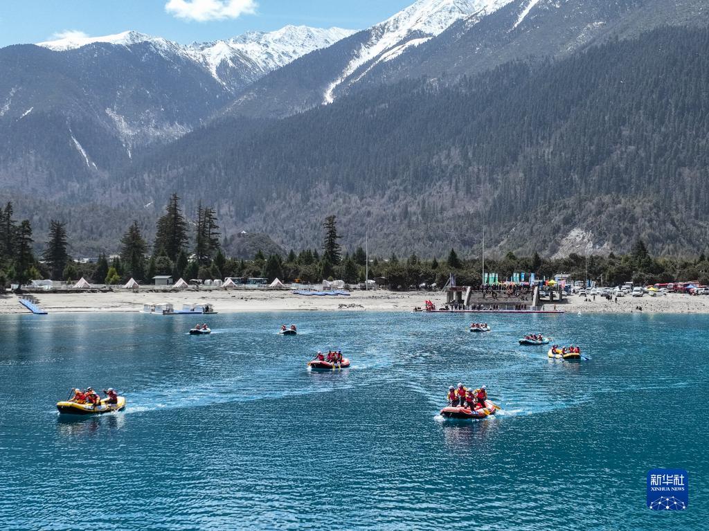 當日,2023年阿依舍·中國漂流聯(lián)賽(西藏工布江達縣站)在西藏林芝市巴松錯國家森林公園開賽。