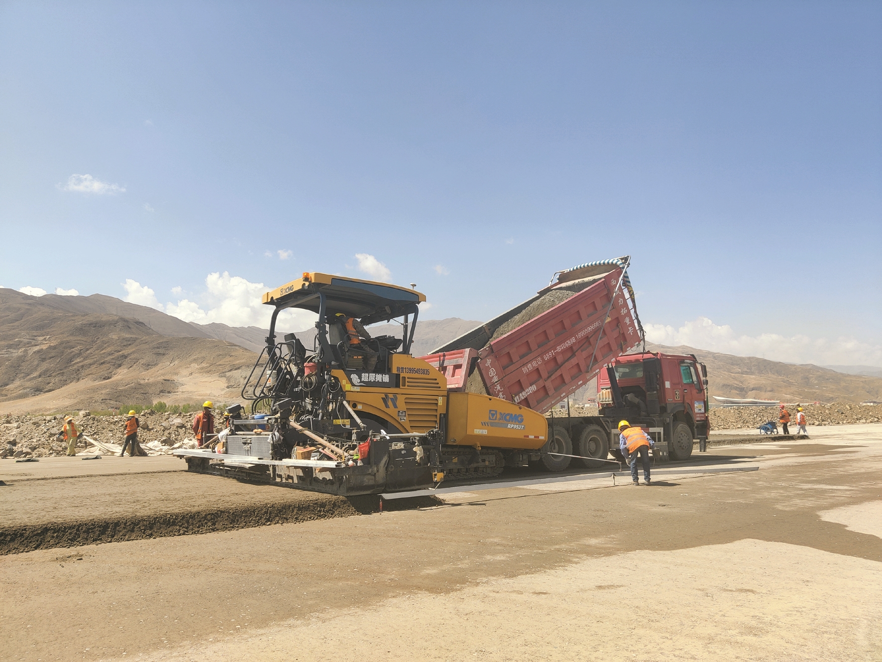 “現(xiàn)在,我們已經(jīng)完成了地基處理與土石方工程,正全面開展跑滑系統(tǒng)道面基礎(chǔ)及相關(guān)配套設(shè)施的施工。在項目建設(shè)過程中,我們除了幾名技術(shù)工外,其余大部分是當(dāng)?shù)厝罕姡瑫r我們也積極吸納專業(yè)對口的大學(xué)生就業(yè)。目前,我們工程項目施工現(xiàn)場每天有800余人,機(jī)械車輛約130臺。”拉薩貢嘎機(jī)場第二跑道飛行區(qū)工程總承包聯(lián)合項目部技術(shù)負(fù)責(zé)人楊彪說。