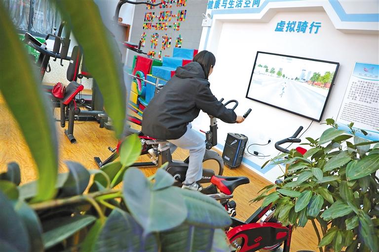 社區(qū)居民體驗(yàn)虛擬騎行。
