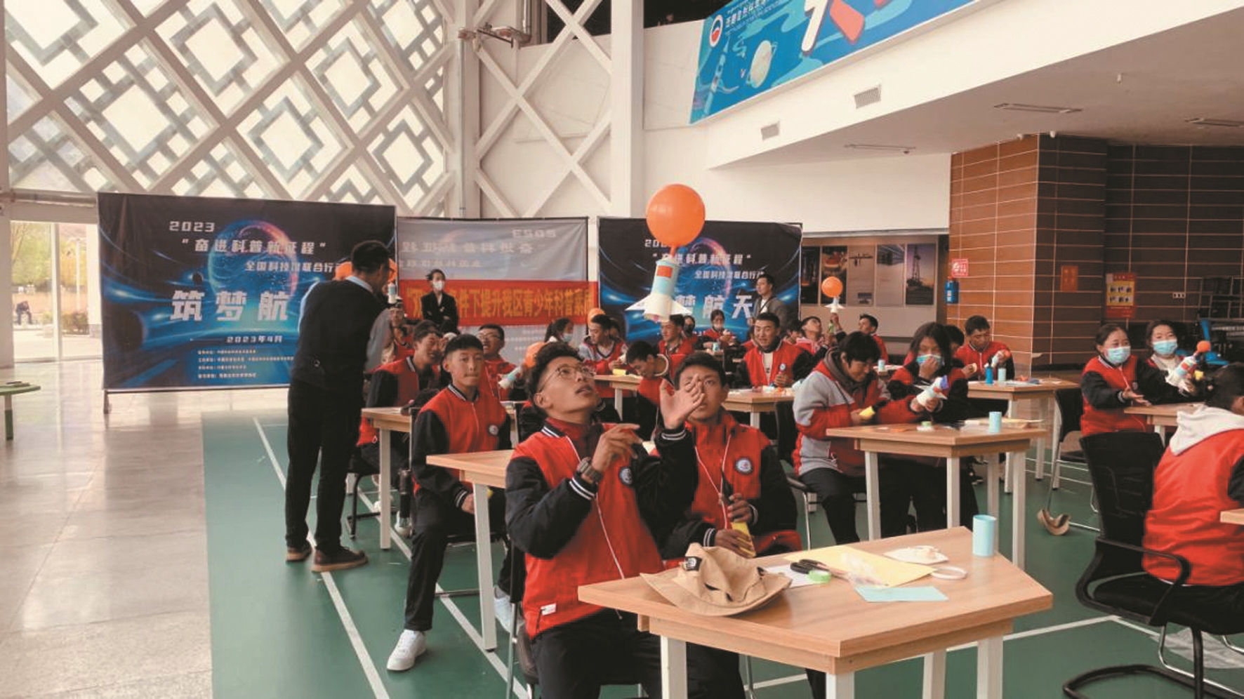 圖為在“筑夢航天”科普活動中,拉薩市第二職業(yè)技術(shù)學(xué)校學(xué)生們跟隨科技輔導(dǎo)員一起探索火箭升空的奧秘。 拉薩融媒記者 小索朗曲珍攝