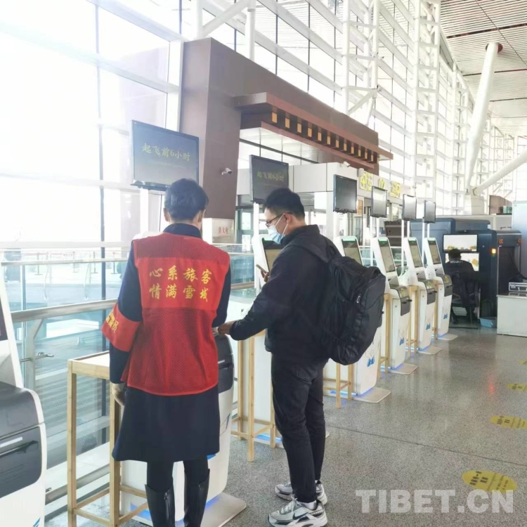 無托運行李的旅客持個人身份證(或有效證件)前往自助值機區(qū)打印登機牌。有托運行李和中轉聯(lián)程航班的旅客前往人工柜臺辦理。其中,乘坐西藏航空公司航班的旅客進入出發(fā)大廳后左轉前往F、G島辦理乘機手續(xù),其他航空公司的旅客請前往B、C、D島辦理乘機手續(xù)。