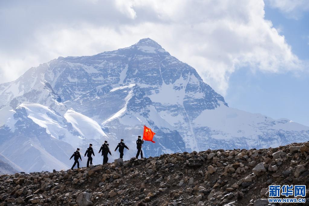 珠峰邊境派出所民警在珠峰核心區(qū)巡邏。