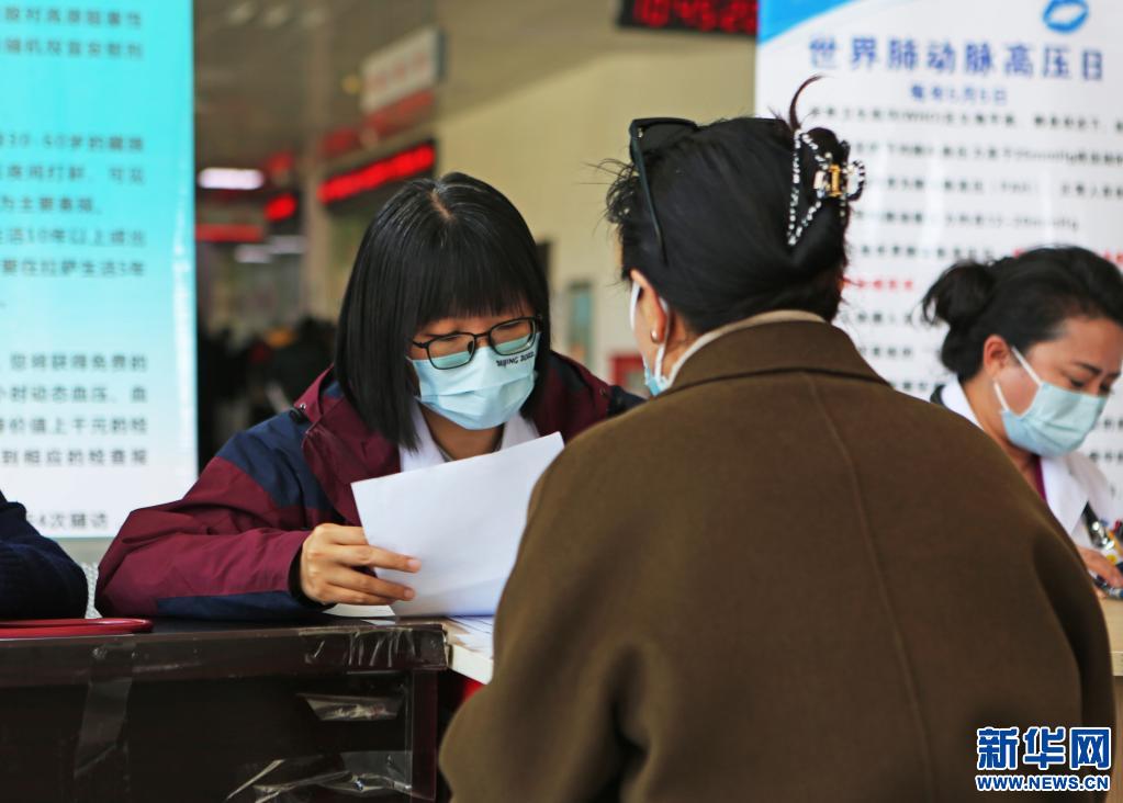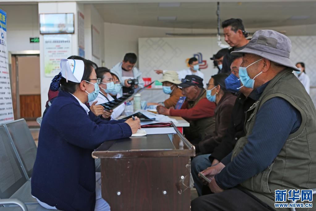 圖為“京藏攜手,護佑藍唇”義診活動現(xiàn)場,醫(yī)生在為患者測量血壓。(5月5日攝)