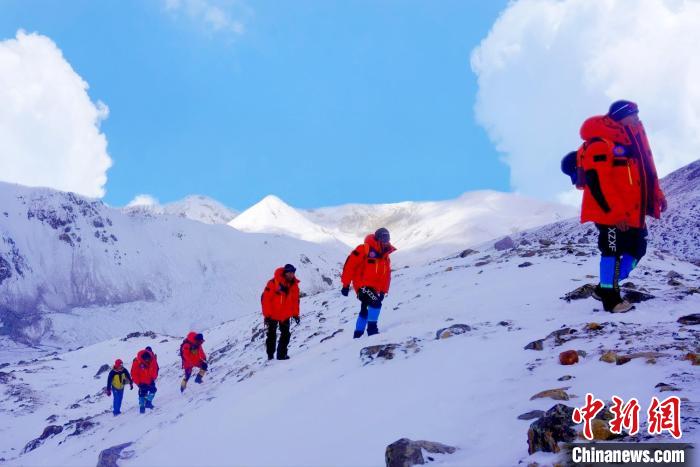 國(guó)家高山救援拉薩大隊(duì)隊(duì)員向海拔6010米洛堆峰進(jìn)發(fā)?!〖?攝