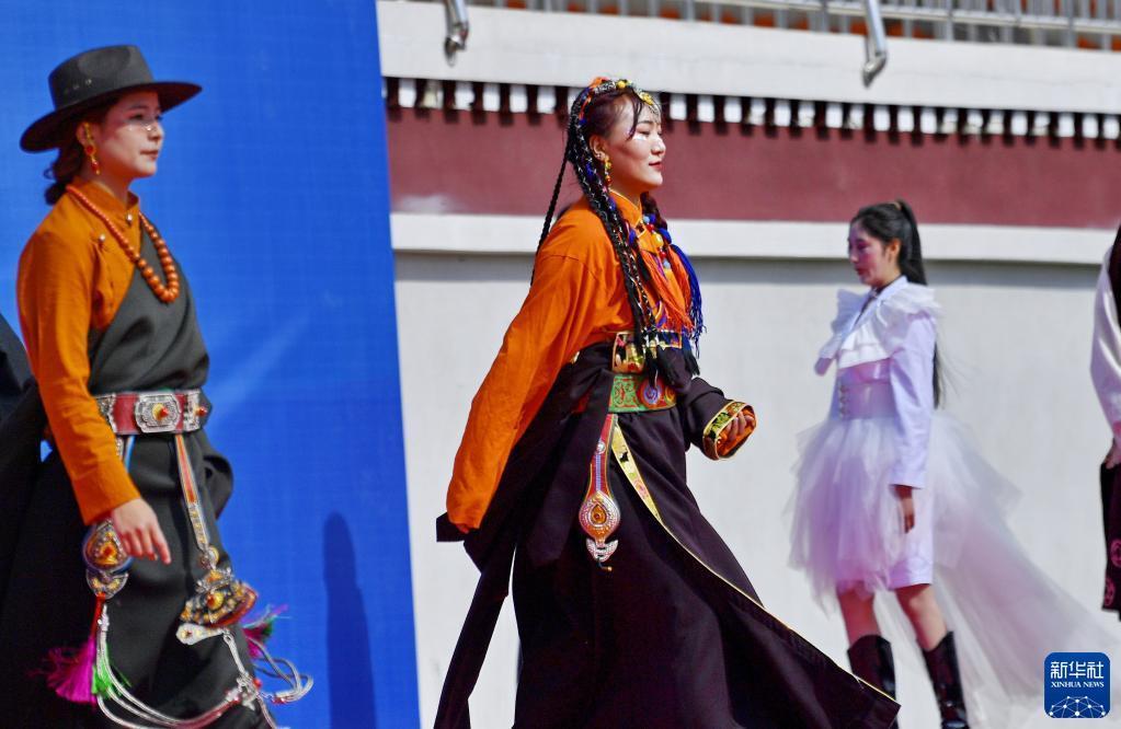 5月10日,西藏技師學(xué)院學(xué)生進行傳統(tǒng)服飾表演。新華社記者 張汝鋒 攝