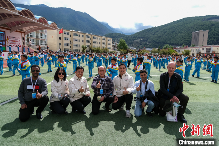 由尼泊爾、緬甸、菲律賓、莫桑比克、斐濟(jì)、委內(nèi)瑞拉、印度尼西亞、孟加拉國(guó)等多國(guó)駐華大使、公使,以及外籍專家、學(xué)者等組成的團(tuán)隊(duì)18日在西藏自治區(qū)林芝市第二小學(xué)參觀訪問(wèn),現(xiàn)場(chǎng)聽(tīng)孩子們彈奏扎念琴、體驗(yàn)藏文書法等。
