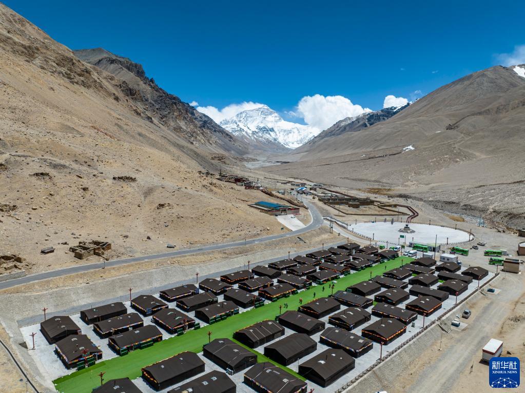 這是珠峰游客大本營的帳篷旅館(5月20日攝,無人機(jī)照片)。新華社記者 孫非 攝