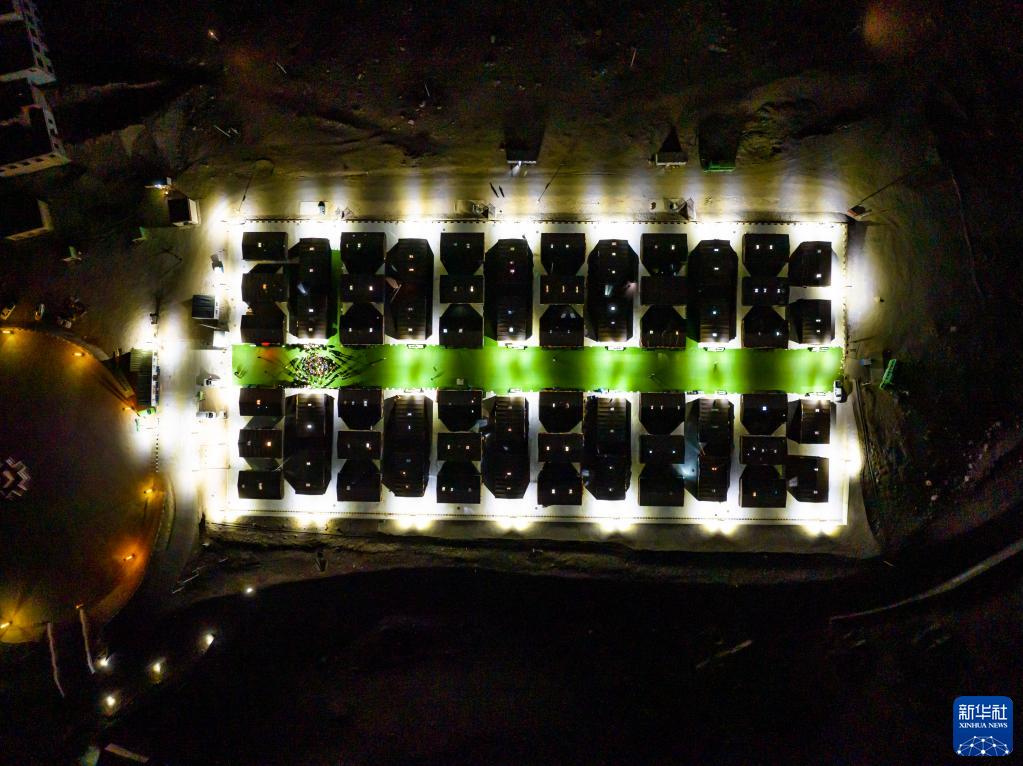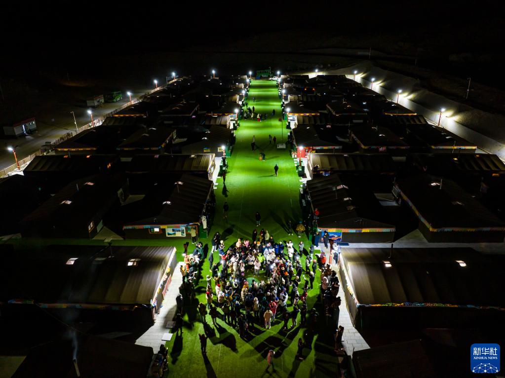 這是夜晚的珠峰游客大本營帳篷旅館(5月16日攝,無人機(jī)照片)。新華社記者 孫非 攝