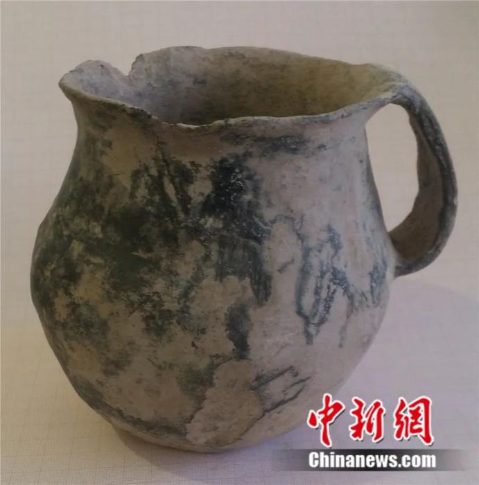從西藏昌都江達縣境內(nèi)的乃若山墓葬內(nèi)出土的單耳陶罐。陳祖軍 攝