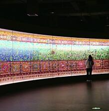 唐卡藏語意為“卷軸畫”,常見的唐卡作品長寬都在1米左右,這幅長618米的巨幅唐卡尺寸之大,實(shí)屬罕見。整幅作品由金銀、珊瑚、瑪瑙、珍珠、綠松石等純天然礦物配制的顏料繪制而成,上下裝飾的堆繡圖案達(dá)3000多種。藏文化博物院用四層整層對其進(jìn)行了完整展示,蜿蜒曲折的展線讓人仿佛徜徉于歷史長河。