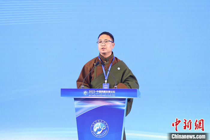 5月23日,“2023·中國(guó)西藏發(fā)展論壇”在北京舉行。中國(guó)藏學(xué)研究中心總干事鄭堆發(fā)言介紹了中共十八大以來(lái),西藏傳統(tǒng)文化得到傳承、保護(hù)和發(fā)展的情況。 中新社記者 蔣啟明 攝