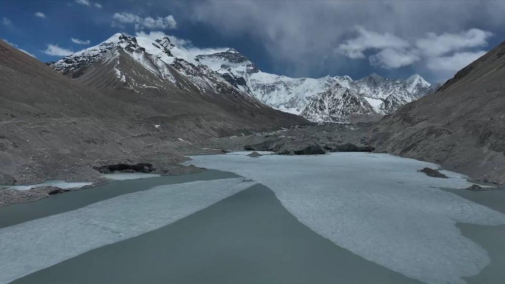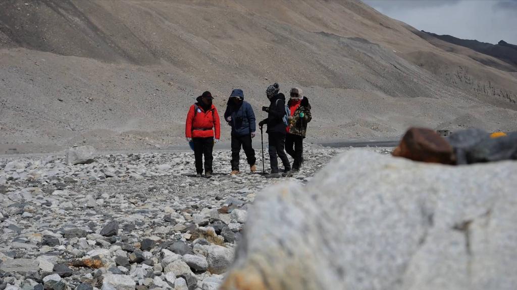 在海拔5200米的登山大本營(yíng)附近的絨布河進(jìn)行完檢測(cè)后,科考人員一行計(jì)劃前往約三公里外的中絨布冰川末端的冰湖,采集冰川融水樣本并檢測(cè)水質(zhì)。