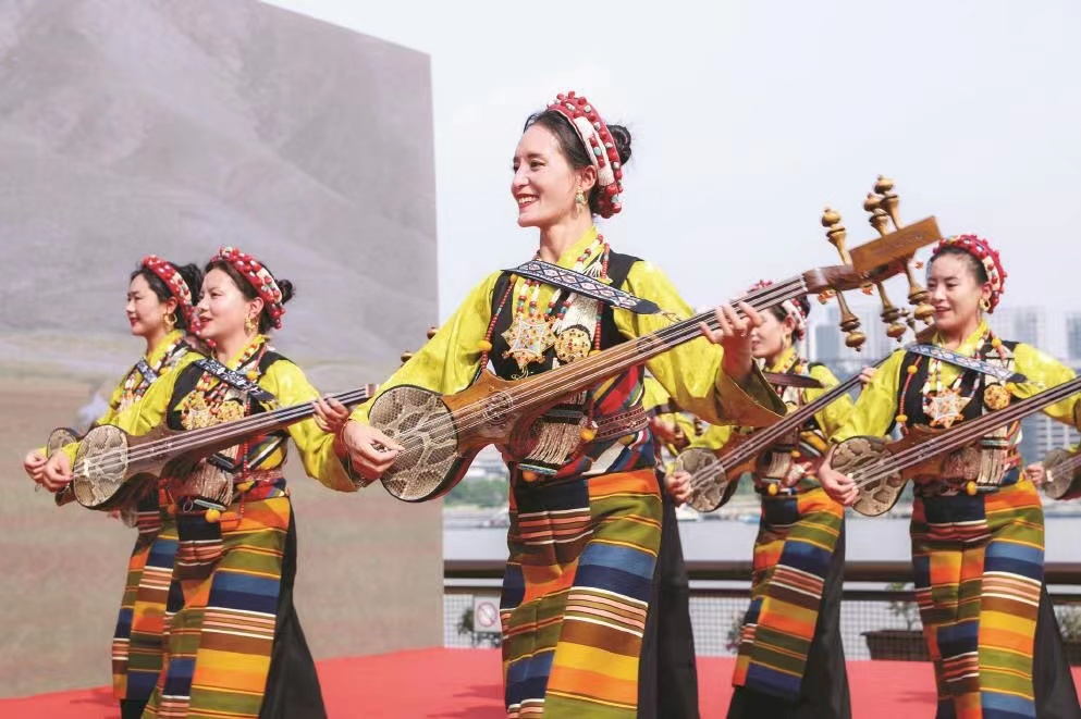 5日,由上海市援藏干部人才聯(lián)絡組拉孜小組、西藏日喀則市拉孜縣文化和旅游局主辦的“遇見|雅江情濱江意·滬藏文化交流”演出,走進上海楊浦文化新地標“YOUNG劇場”,悠揚的扎念琴聲、時快時慢的“踢踏”舞聲、傳統(tǒng)藏族曲調(diào)和現(xiàn)場觀眾的歡笑聲、鼓掌聲,為初夏的繽紛申城再添一抹亮色。