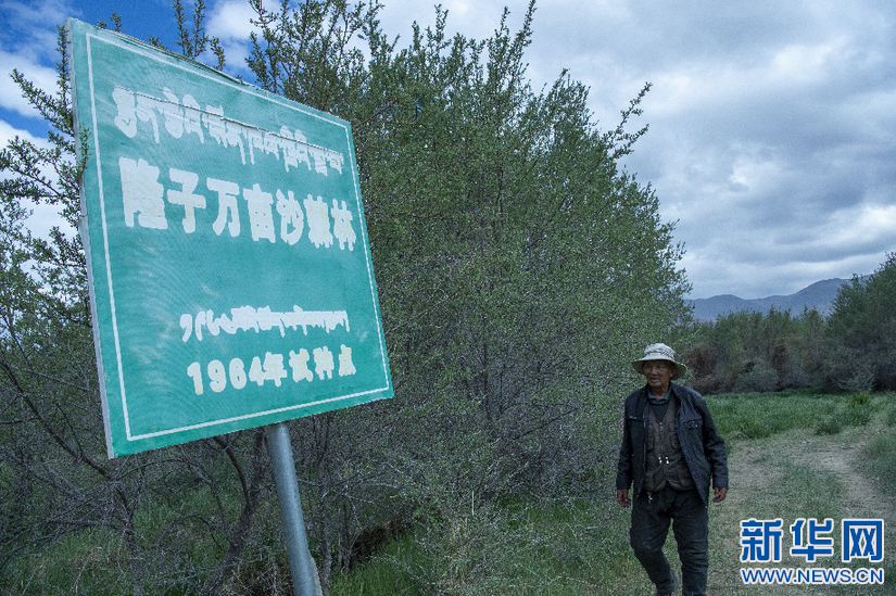 6月8日,索朗拉杰在介紹20多年前種的沙棘。新華網(wǎng) 旦增努布 攝