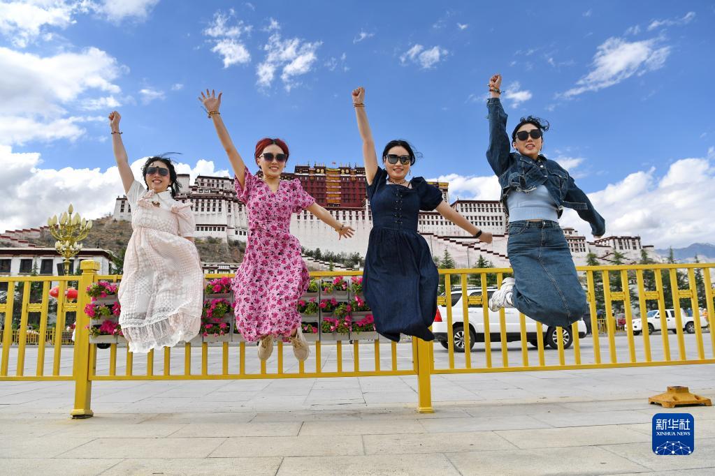 游客在布達拉宮廣場上合影留念(6月15日攝)。新華社記者 張汝鋒 攝