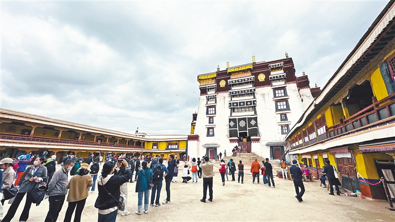 活動邀請了文化和旅游部領(lǐng)導(dǎo)、援藏省區(qū)市嘉賓、旅游企業(yè)代表以及媒體記者團(tuán)200余人,前往布達(dá)拉宮、大昭寺、西藏博物館、羅布林卡等景點(diǎn)“打卡”。在布達(dá)拉宮東大殿,大家觀賞記載有西藏佛教發(fā)展歷史、五世達(dá)賴生平、文成公主進(jìn)藏過程的壁畫;來到羅布林卡,蔥綠的樹木、鮮艷的花朵、宏偉的藏式建筑讓人流連忘返。