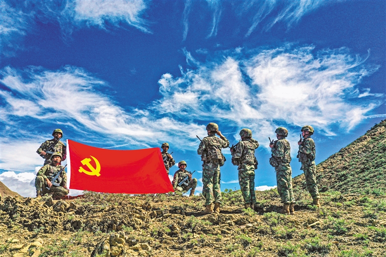 近日,駐藏某部巡邏官兵在某山口重溫入黨誓詞。王乾 攝