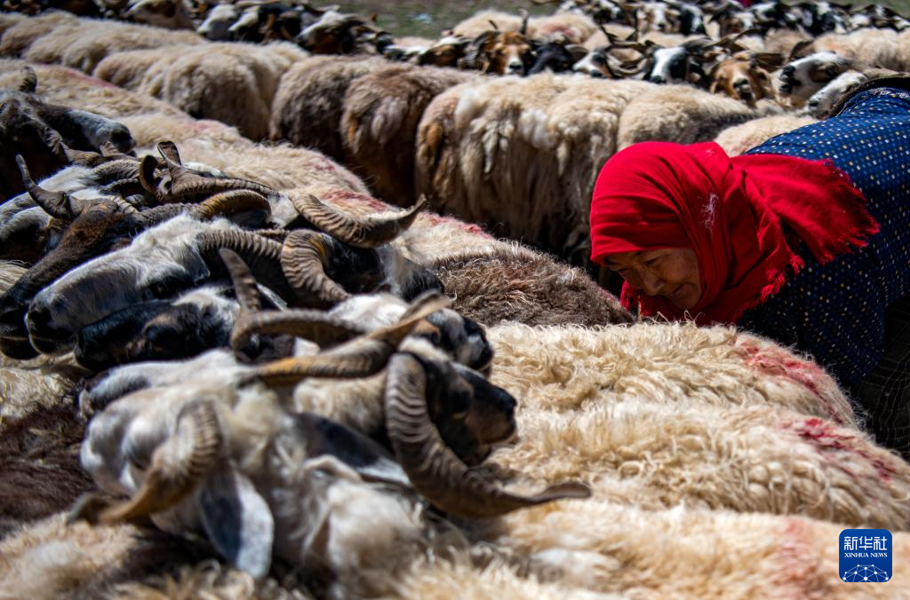 多爾格村的一名村民在擠羊奶(7月11日攝)。新華社記者 姜帆 攝