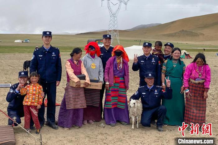圖為馬攸橋邊境檢查站民警看望慰問當?shù)剞r(nóng)牧民。馬攸橋邊境檢查站 供圖