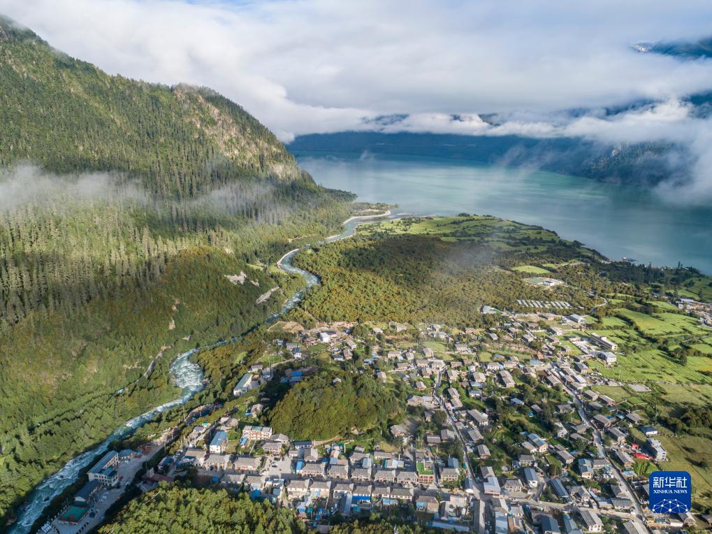 這是7月20日拍攝的西藏林芝市工布江達縣錯高鄉(xiāng)結(jié)巴村景色(無人機照片)。新華社記者 孫非 攝
