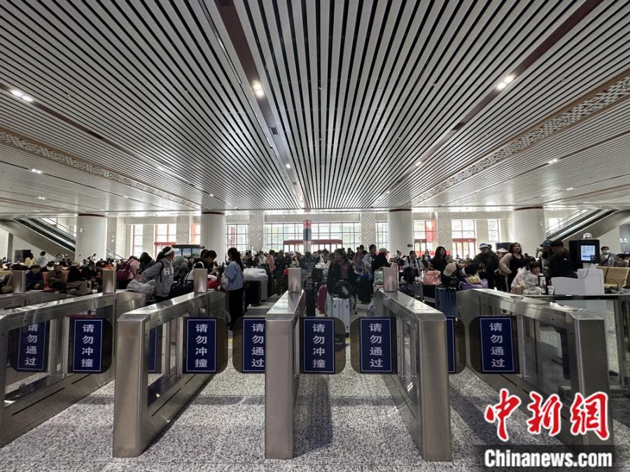 在林芝火車站,旅客正在等待前往拉薩的列車。錢姣姣 攝