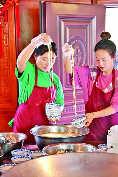 加加面是芒康鹽井的一種美食,顧名思義就是“不停地加”。圖為當?shù)匕傩罩谱骷蛹用?。光明日報記?劉宇航攝